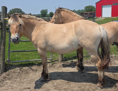 Leif is a big colt. If you are looking for a fjord with some extra size you are going to find it right here. He is a confident colt and wants to be in your space. Grete is a quiet gentle mare who goes back to Roriks boomer and Svalbard, some of the older names in the fjord world which we have found in the past to produce easy going large, good minded fjords.